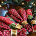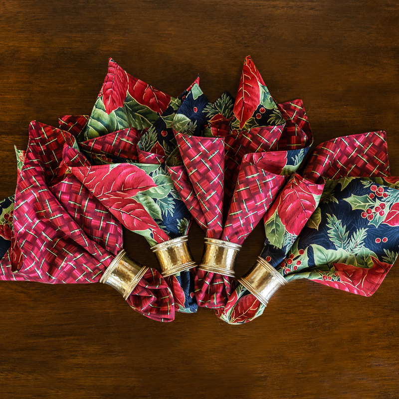 Complete your holiday ensemble with these reversible cloth napkins made with the Evergreen Bows collection by Maywood Studio!